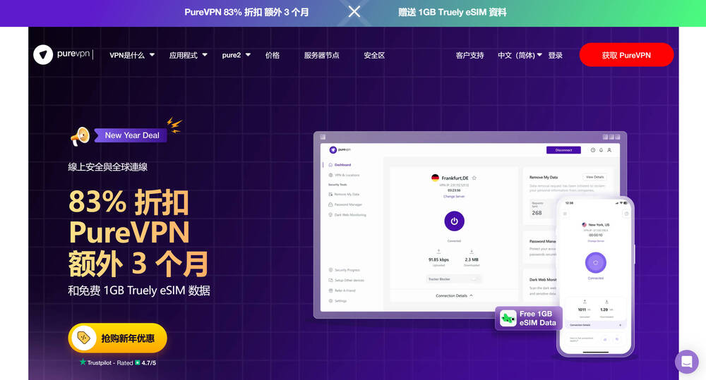 PureVPN 也是一家运营时间较长的 VPN 服务商,曾经有很多海外用户选择它来翻墙回国。PureVPN 不仅价格便宜,而且连接速度也很快,是不可多得的 VPN 推荐之一。